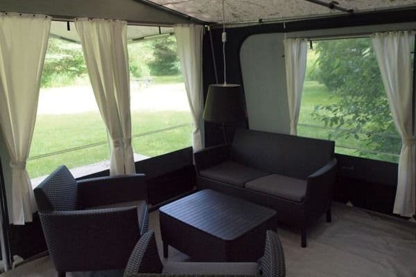 Välkommen till camping med guldkant! I det här moderna villatältet ryms 4. Njut av naturen precis utanför dragkedjan ihop med lyxen av en nybryggd kaffekopp från ditt egna lilla kök. I tältet finns kyl, vattenkokare, köksredskap, porslin och bestick samt bekväma sittmöjligheter. I hyran ingår även täcken och kuddar. Njut av alla fördelar med denna glamorösa variant av camping!