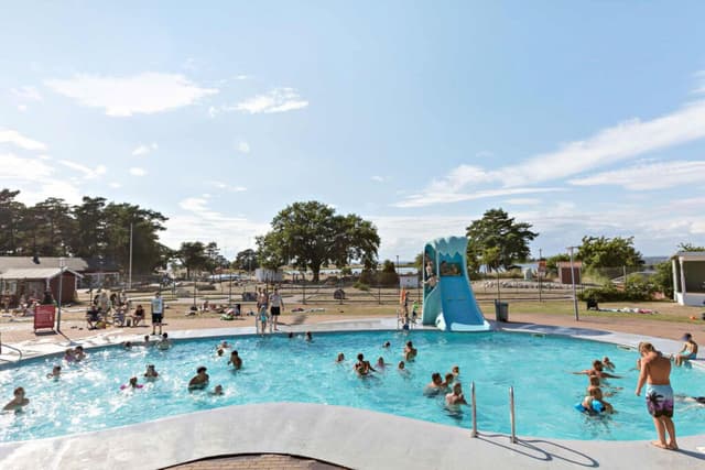 Vårt populære bassengområde består av to bassenger, hvorav det ene er et barnebasseng. Her finner dere også to morsomme vannsklier. Gratis inngang for boende gjester. I sommersesongen er bassengområdet kun åpent for boende gjester.