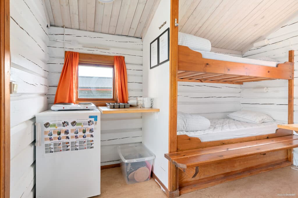Gärdsjöhytt er campingplassens enkleste hytter og måler 12 kvadratmeter. Hytta har to køyesenger med plass til totalt fire personer. Tepper og puter er tilgjengelige til alle senger i hytta. Det er et lite kjøleskap og kokeplater i hytta, men ikke innlagt vann. I hyttene finner du servise til 4 personer og kjøkkenutstyr for enkel matlaging. Fasiliteter som toalett, dusj og et større kjøkken finnes i servicebygningene. Hytte nummer 31 er 15 kvadratmeter og har også TV, mikrobølgeovn og kaffetrakter. Hvis du ønsker en spesifikk planløsning i denne hyttekategorien, vennligst velg en spesifikk hytte som et alternativ ved bestilling. Vær oppmerksom på at det ikke kan bestilles barneseng i disse hyttene da de er for små.