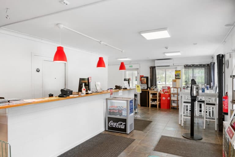 I kiosken vår finner du det viktigste for koselige campingkvelder. Her finner du godteri, chips, nøtter og deilige drikkevarer. For alle iskremmonstrene der ute, finnes det også en hel fryser med masse deilig is.
