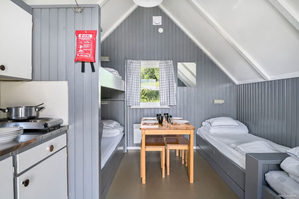 Her bor du i en koselig hytte hvor du kan nyte en herlig og åpen utsikt over Storsjön og deler av Östersund. Arnljotstugan er en mindre campinghytte på 15 kvm med 4 sengeplasser – én køyeseng og to enkeltsenger. I hytta finnes både kaldt og varmt vann, kokeplate, oppvaskbenk, kjøleskap med fryseboks og enkelt kjøkkenutstyr for 4 personer.