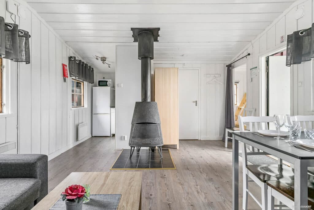 Storsjöstugan er en koselig selvhusholdshytte i lyse farger og med 4 sengeplasser. Hytta har et areal på 35 kvm og er også utstyrt med vedovn, bare for litt ekstra kos! Hytta har en køyeseng i sovealkoven (underseng 120 cm og overseng 90 cm bred) og en sovesofa for to personer. Det er også plass til en ekstra seng for de som trenger det. Hytta har en fin stue, spiseplass for 5 personer og TV for koselige kvelder innendørs med familie eller venner. Fullt utstyrt kjøkken med komfyr, kjøleskap, fryser, mikrobølgeovn og kaffetrakter. Bad med dusj og toalett. På balkongen kan du nyte utsikten fra våre utemøbler og de vakre omgivelsene. Populær hytte med storslått utsikt over Östersund og Storsjön. En overnatting for de som ønsker en litt høyere standard!