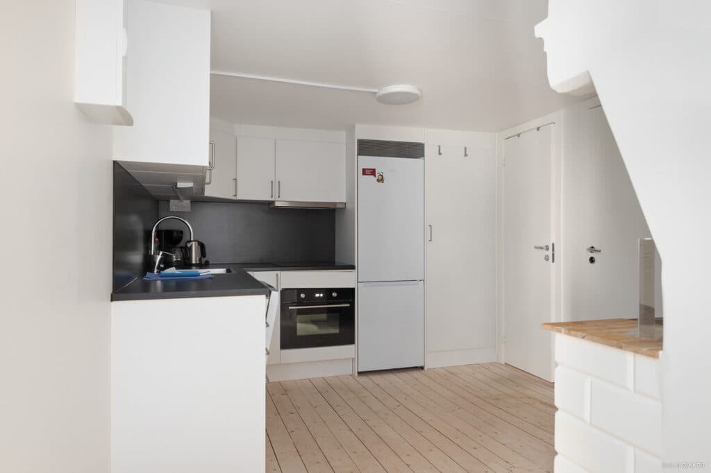 Velkommen til Hamnvillan, en splitter ny bolig i Gränna! Her bor du på 45 trivelige kvadratmeter i lyse og friske omgivelser. Hytta har plass til opptil 4 personer. Sengene er fordelt på et soverom med en dobbeltseng og et soverom med en køyeseng. Her finnes alt du kan tenkes å trenge i løpet av ferien. Utenfor er det også en hyggelig terrasse hvor du kan nyte morgenkaffen med utsikt over vakre Vättern. Kjøkkenet er utstyrt med servise og annet kjøkkenutstyr som oppvaskmaskin, komfyr, kaffetrakter, kjøleskap og fryser og kombinert ovn/mikrobølgeovn.