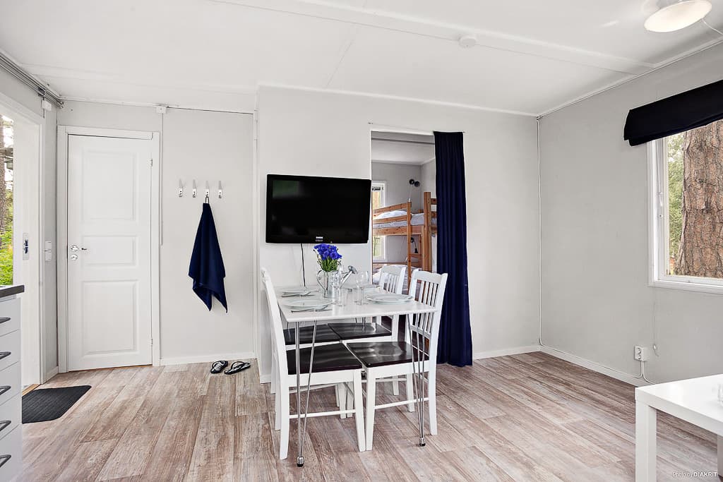 Tallstuga er en veldig trivelig hytte på 25 kvm. Noen hytter er plassert ved havet nær badeplassen, mens andre ligger i mer frodige områder på campingplassen. Her kan følget nyte en rolig og avslappende ferie i disse hyttene for totalt fire personer. Inne i hytta finner du en lys og innbydende kombinert stue og kjøkken med spiseplass for fire, TV og en sovesofa. Kjøkkenet er utstyrt med kjøleskap, fryser, komfyr, stekeovn og mikrobølgeovn. Hyttas soverom har to enkeltsenger, og dyner og puter finnes til alle sengene i hytta. I det lyse badet finnes det dusj og toalett.