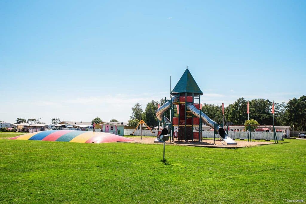 Her på campingplassen er det en supermorsom lekeplass med hoppepute hvor barna vil elske å hoppe i timevis! Her finner du også flere husker, en lang sklie med et morsomt klatretårn. Foran 2022-sesongen vil vi også investere ressurser i å renovere og pynte opp lekeplassen slik at den er klar for mye lek og ugagn i sommer!