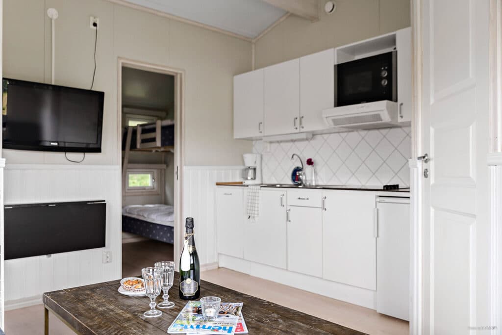 Velkommen til vår hytte på Brooktorp med plass til opptil fem personer. I hyttas kjøkken kan du enkelt lage din egen middag. Det er komfyr og det meste av kjøkkenutstyret du måtte trenge. Perfekt for de som ønsker å forlate hytta og nyte måltider sammen med reisefølget. Hyttas senger er fordelt på to soverom, ett med dobbeltseng og ett med køyesenger og enkeltseng. Alle senger har komfortmadrasser. Hytta har bad med toalett og dusj. I stuen kan du også slappe av med en liten TV. Rett utenfor døren er en sørvendt terrasse. Terrassen er utstyrt med bord og fire stoler. Finnes det noe bedre enn frokost ute i det fri? Kjæledyr er ikke tillatt i disse hyttene.