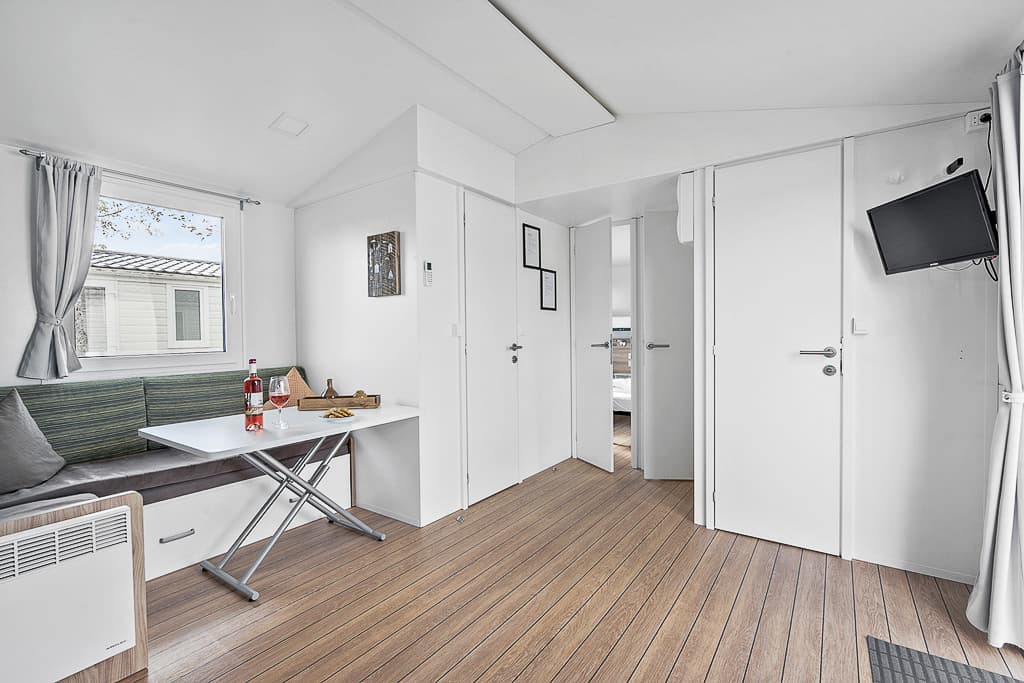 Velkommen til Enebærodde-hytta! Full komfort samtidig som du får hele campingopplevelsen. Hytta er en mobilhytte og romslig med plass til opptil 7 personer. Soveplasser for 7 personer er fordelt som følger: ett soverom med en 110 cm seng, ett soverom med to enkeltsenger og et tredje soverom med to enkeltsenger og en køyeseng. Hytta har også kjøkken, stue, bad, 2 toaletter og en stor terrasse.