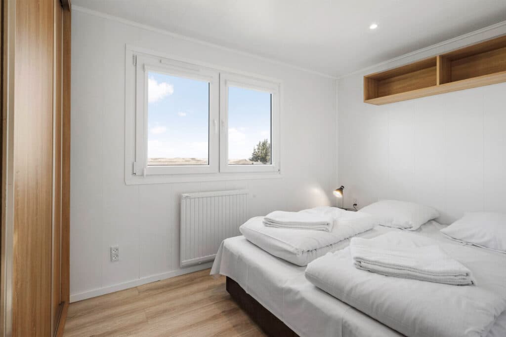 I en Mobilehome har du alt du trenger for en god ferie: Gode senger, kjøkkenfasiliteter med oppvaskmaskin, bad/toalett, sofa og TV samt møbler på terrassen, slik at du kan nyte sommeren eller lyden av det brusende Nordsjøen .