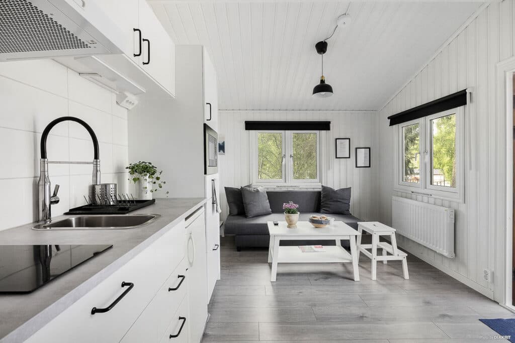 Dessa 4-bäddsstugor är på 20 kvm och är byggda parvis. I stugan finns kombinerat kök/allrum, ett sovrum med våningssäng samt badrum. Köksdelen har ett pentry som innehåller kylskåp, spisplattor och mikro. Allrumsdelen har bäddsoffa samt TV. I badrummet finns dusch och toalett. Täcken och kuddar finns till stugans alla bäddar. Uteplatsen är möblerad och bilen kan man parkera precis intill stugan.