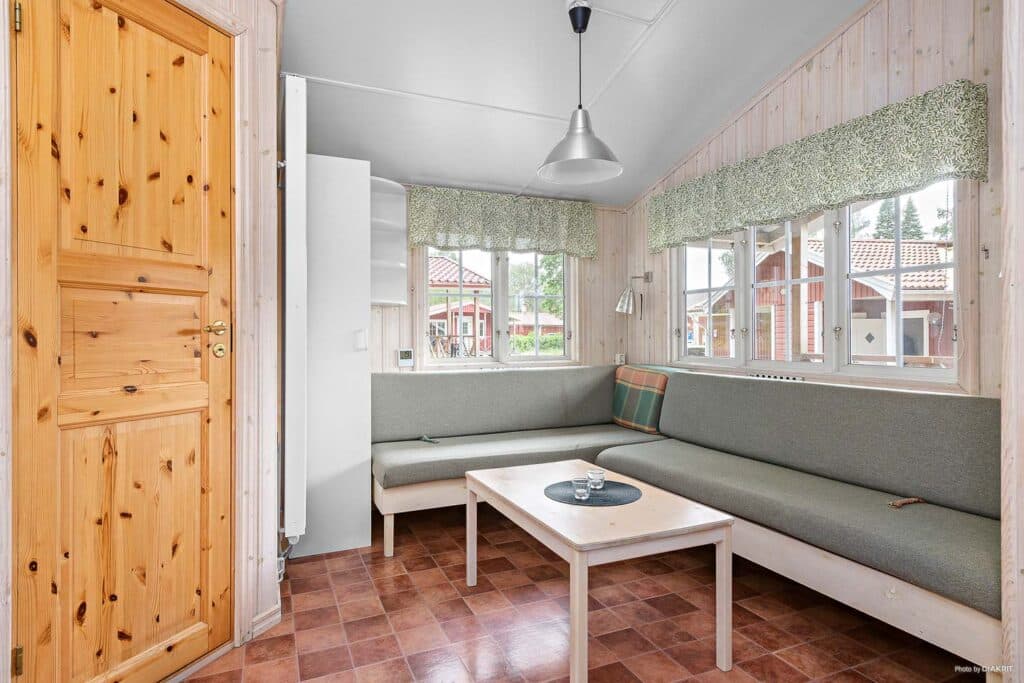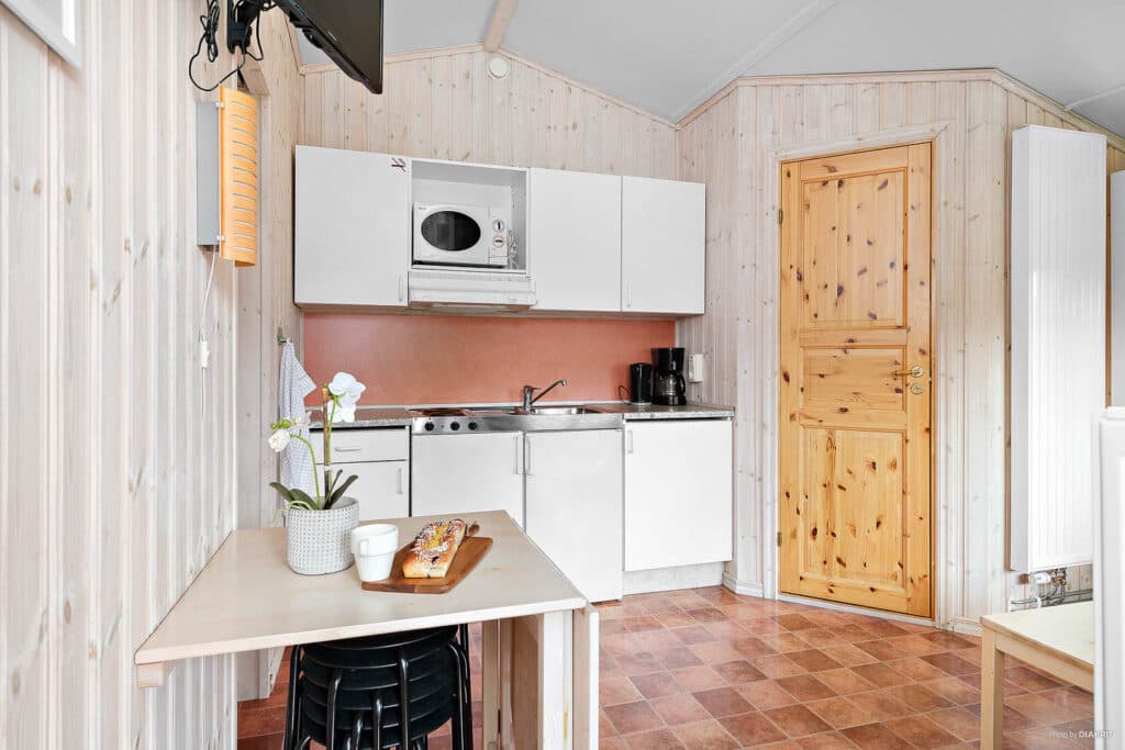 Lugnetstugan er et godt valg for både små og store familier. Her bor du på 26 m² med to separate soverom møblert med køyesenger og en sovesofa for to personer. Hyttene er utstyrt med kjøleskap, kokeplater, kjøkkenutstyr, kaffetrakter og mikrobølgeovn. Perfekt for de som ønsker å lage mat med familie eller venner uten å måtte dra. Utenfor hytta finner du også en fin terrasse med utemøbler hvor du kan sitte og nyte de vakre omgivelsene. Perfekt for varme sommerkvelder eller for de som foretrekker å drikke morgenkaffen utendørs! Hytta er røyk- og dyrefri. Når du bor i Lugnetstugan, bor du også i nærheten av en lekeplass innenfor reisemålet.