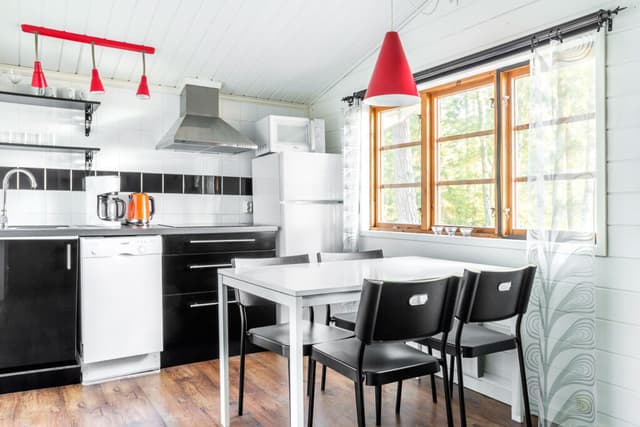 Här är en enklare stuga på 16 kvm, med plats för fyra bäddar.