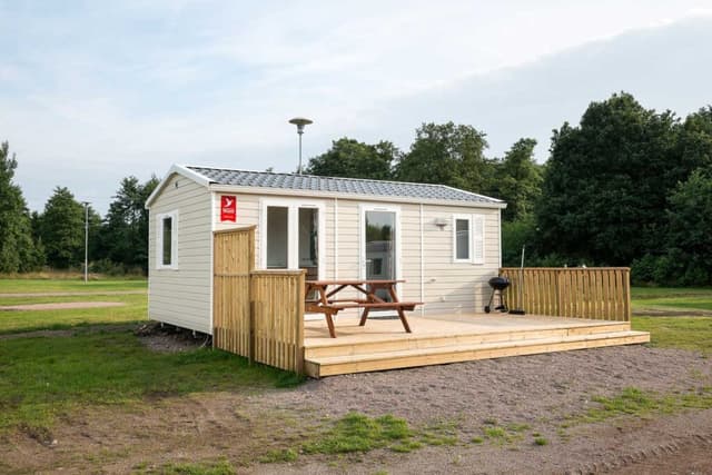 Våra traditionella campingstugor är belägna strax ovanför husvagnscampingen på område 1.