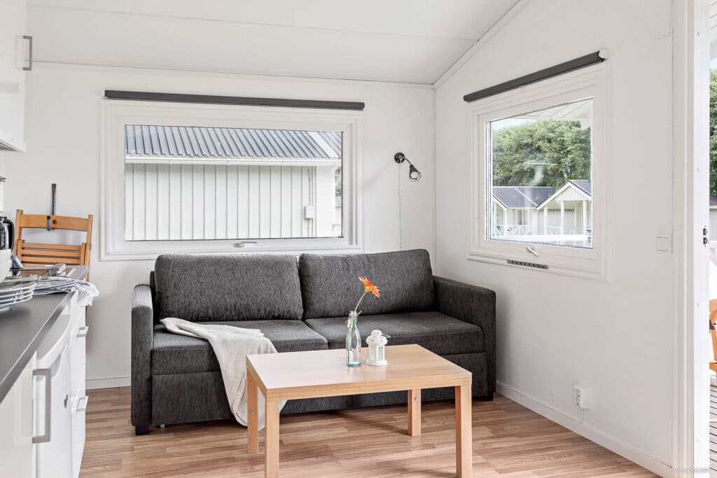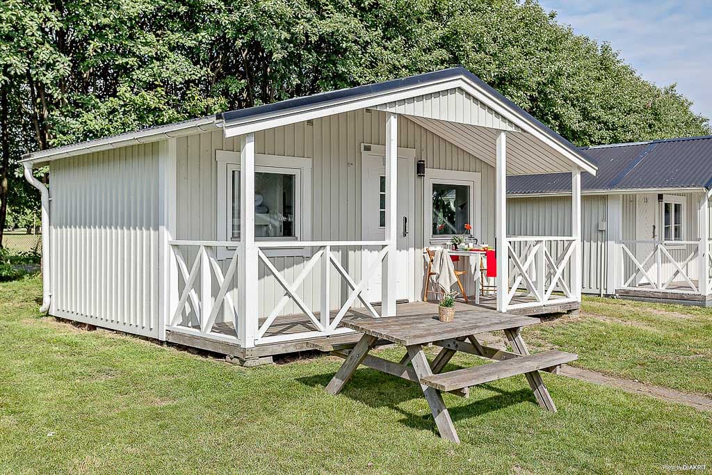 Kliv in i Barsebäckstuga och bo i en välplanerad stuga för det mindre sällskapet. Med lekplats, bistro och butik som närmsta granne har Barsebäckstuga alla campingens bekvämligheter runt hörnet. Stugan är 18 kvm och har plats för totalt fyra personer. Inne i stugan möts du av ett ljust allrum kombinerat med kök och matplats. Här finns bäddsoffa för två personer och en tv, köket är modernt utrustat med kyl, spis och mikro. I stugans sovrum finns en våningssäng och täcken och kuddar finns till stugans alla bäddar. Badrummet har dusch och toalett. Altanen är belägen under tak och de trevliga utemöblerna är en perfekt plats för morgonkaffet eller eftermiddagsfikat.