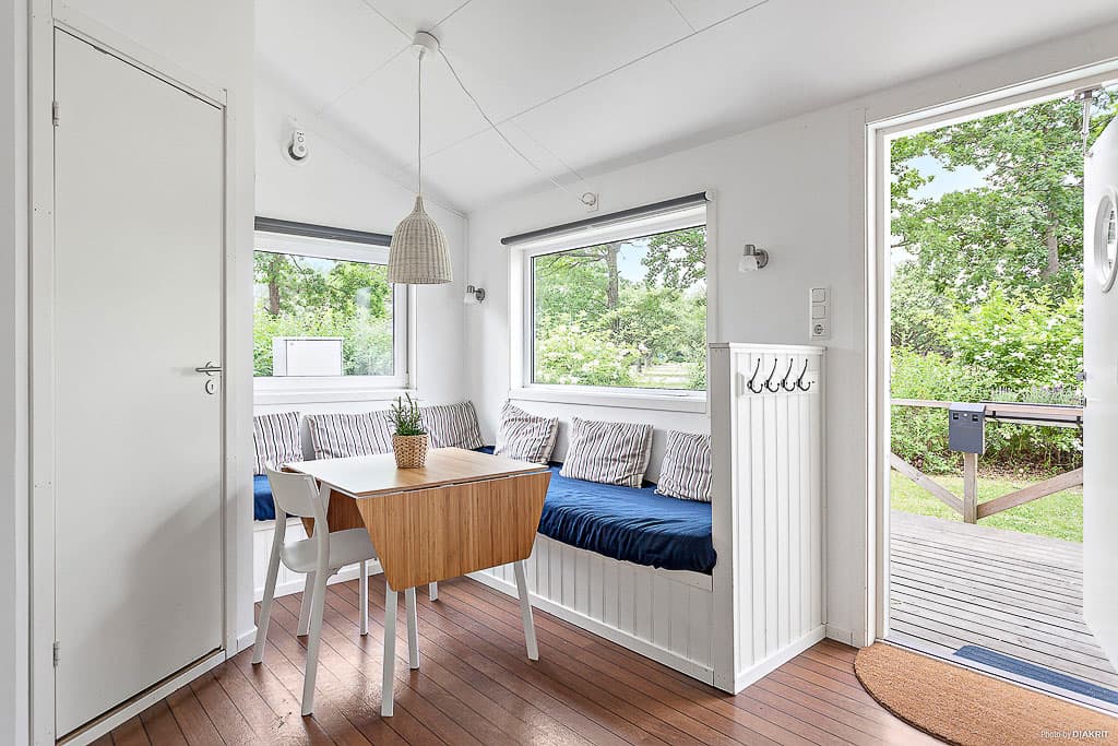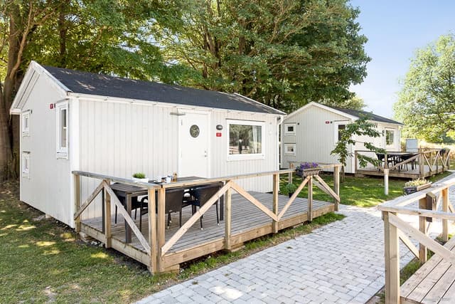 Limhamnstuga har en boareal på 25 kvm og rommer opptil seks personer. Sengene i hytta er fordelt på to separate soverom samt en sovesofa med plass til to personer. Det er dyne og pute til alle sengene i hytta. Fra den koselige hyttebyen hvor Limhamnstuga ligger, har du kort vei til både minigolf, resepsjon, butikk og campingens bistro. Inne i hytta blir du møtt av en lys og hjemmekoselig innredning med lysinnslipp fra to sider. Oppholdsrommet har et moderne kjøkken med komfyr, stekeovn, kjøleskap, fryser, mikrobølgeovn samt spiseplass for fire personer bestående av en hjørnesofa med tilhørende bord og en Smart-TV. Badet har dusj og toalett. På hyttas møblerte terrasse kan du nyte lange, deilige kvelder hele veien fra forsommeren til den koselige sensommeren. Vær oppmerksom på at sengetøy, håndklær og sluttrengjøring ikke er inkludert i bookingen. Hvis du ønsker å legge til dette, kan det enkelt gjøres i forbindelse med bookingen. Parkering finnes ved siden av hytta.