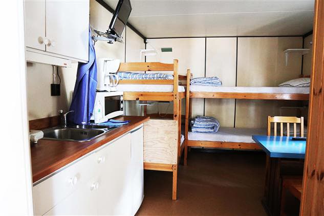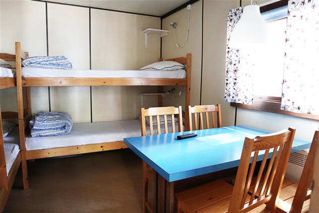 Röjeråstugan er på 15 kvadratmeter og har plass til totalt fire personer. Hytta har to køyesenger, og dyner og puter er inkludert i alle senger i hytta. Kjøkkenet er utstyrt med komfyr, mikrobølgeovn, kjøleskap, kaffetrakter og kjøkkenutstyr. Hytta har TV, og det er også en overbygd terrasse. Badet har dusj og toalett.