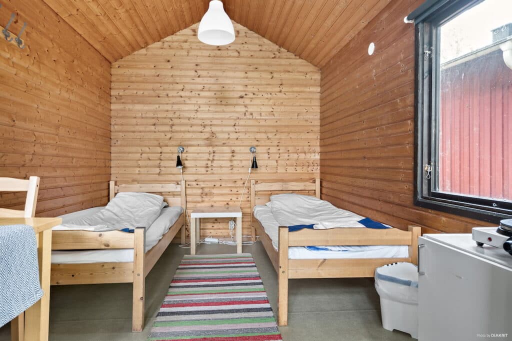 Möckelntorp är vår enda stuga med plats för bara två personer i två enkelsängar. Stugan ligger precis vid vattnet och du vaknar upp med en underbar utsikt över en vik i sjön. Stugan har en liten matplats och möjlighet att laga mat, vatten saknas dock i stugan men kan hämtas från närområde.