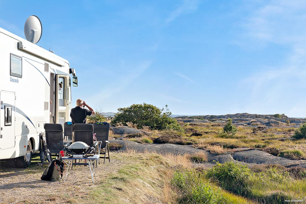 På berget ved campingens innkjøring har vi et eget område for deg som reiser med bobil. Her bor dere midt i kystlandskapet på en gruslagt plass med kunstgress rett utenfor døren. Plassene er omtrent 8 meter dype og har selvsagt strømtilkobling. Flere av plassene ligger også med utsikt over havet.
