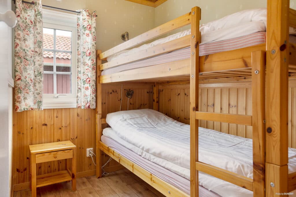 Sunnestugan er på 40 kvadratmeter med to soverom og stue/kjøkken. Det ene soverommet har dobbeltseng, det andre køyeseng og sovesofa. Alle senger i hytta er utstyrt med puter og dyner. Stuen har spiseplass og TV. Hytta har bad med toalett og dusj. Kjøkkenet er utstyrt med oppvaskmaskin, kjøkkenutstyr, kjøleskap/fryser, komfyr med stekeovn, kaffetrakter og mikrobølgeovn. Balkong med utemøbler.