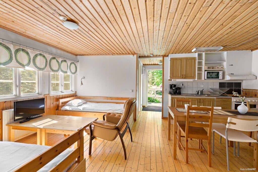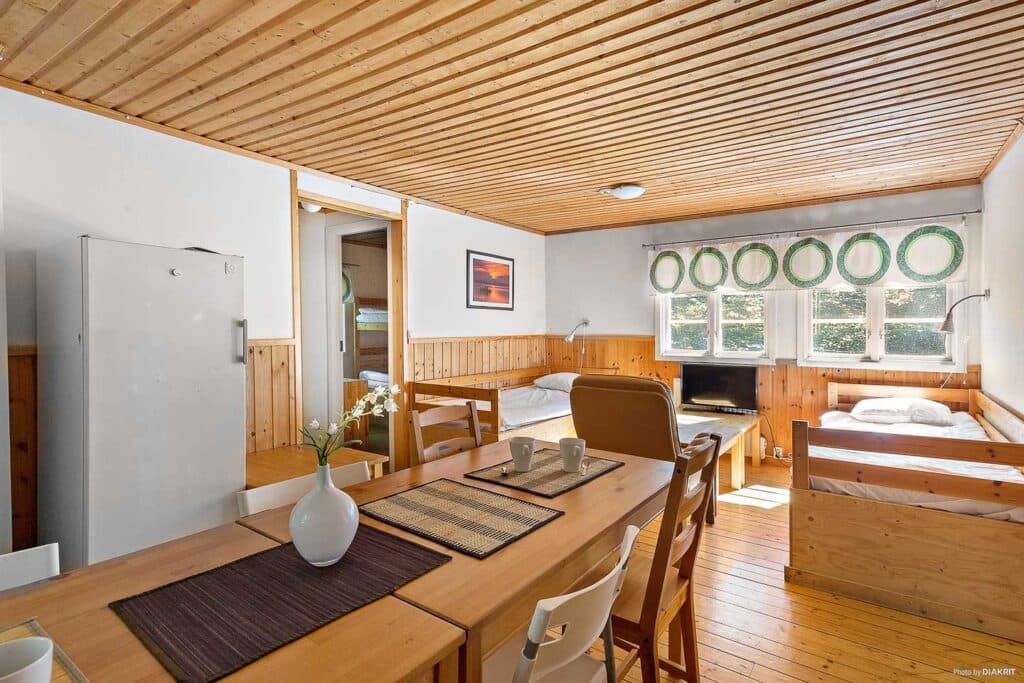Här är en enkel och bra campingstuga med plats för hela sju bäddar (80cm). Stugan ligger avskilt inne i skogen och här bor du med naturen precis runt hörnet. Vänligen notera att toalett och dusch inte finns i stugan, utan de hittar ni i servicehuset som ligger ett par hundra meter bort. I stugan finns pentry med full köksutrustning samt tv med grundutbud. Perfekt för dig som vill slappa och ta det lugnt framför på kvällarna. Bilen kan du enkelt och smidigt parkera i anslutning till stugan. Stugan är rökfri men det är tillåtet att medföra husdjur. Kallvatten finns under sommarhalvåret.