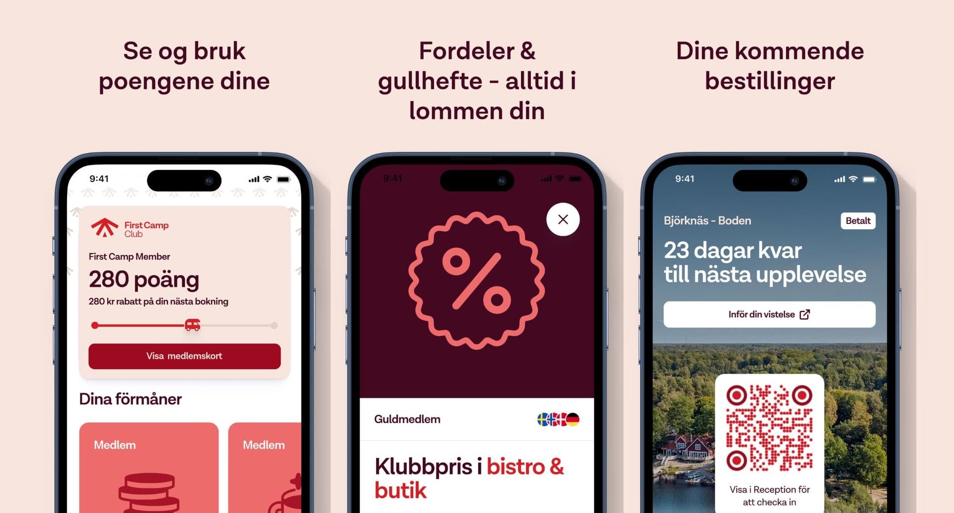 I appen kan du ikke bare bestille din neste reise – du finner også personlige fordeler og tilbud knyttet til ditt medlemskap i First Camp Club. Alt er samlet praktisk på mobilen din!